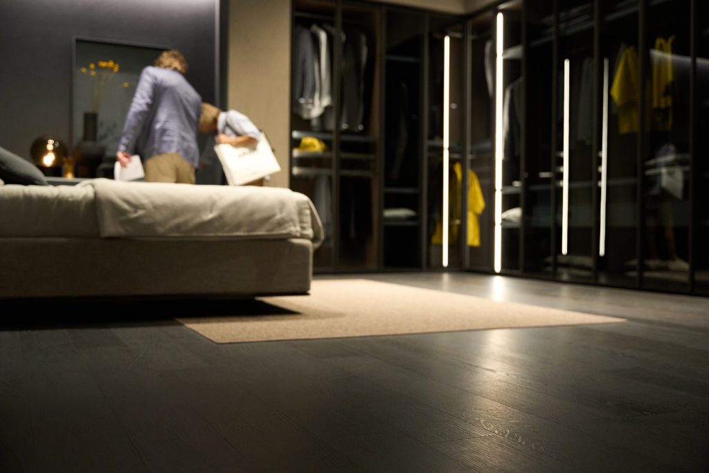 Family, pavimento in vero legno 100% made in Italy e costruito di soli elementi provenienti da foreste certificate e nobilitato da una cartella superiore di tranciato di rovere o walnut.